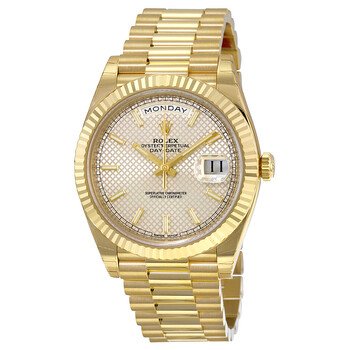 Replica–Day-Date 40 Silver Diagonal Motif Dial 18K Yellow Gold President Automatic Men’s Watch 228238SSP